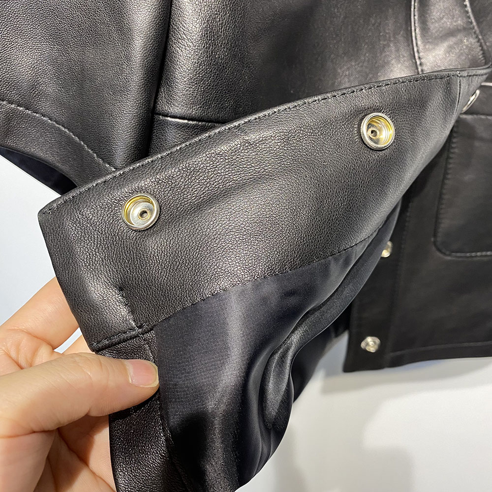 Short Sleeve Single Breasted Short Real Leather Jacket Shirt Women 2022 Autumn New