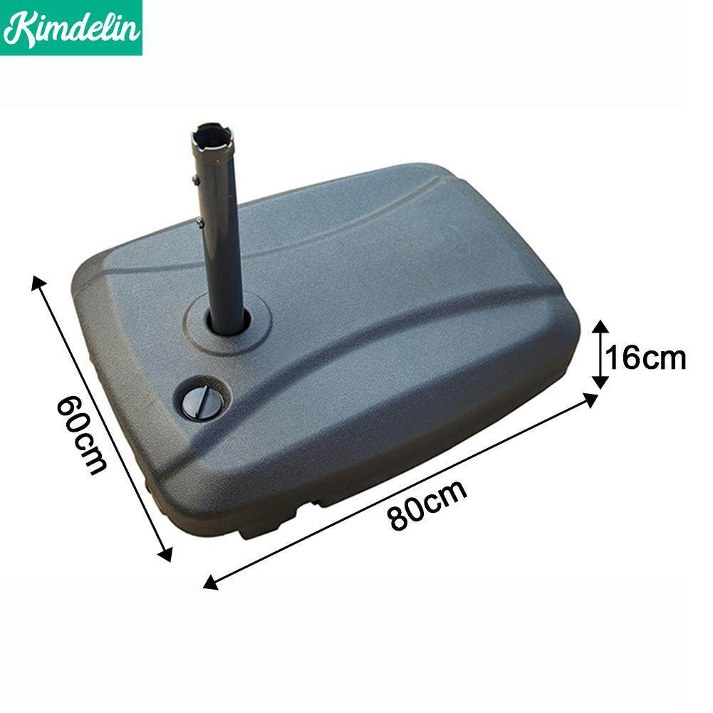 Name: Umbrella BaseMaterial: plasticWeight: 8000gProduct size: L80*W60*H16CM/31.50*23.62*6.30inProvide weight: 60KGInsert hole size: 38mm/1.50in,48mm/1.89inRecommended umbrella size height: 2.7m/,3.0m/,3.3m/Packing: boxPacking List:Parasol Stand * 1