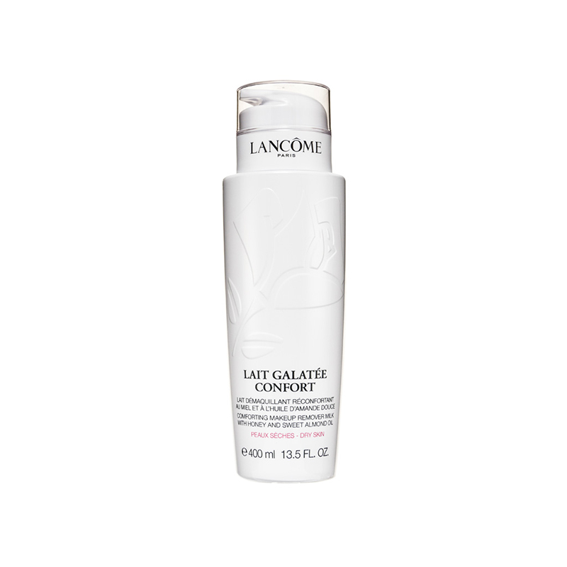 Lancôme Galatée Confort (50ml) Enriched with botanical ingredients to gently remove makeup and residues while replenishing moisture and nourishing skin, specifically suitable for dry skin. Skin is softened and smoothed from a comfortable cleansing experience.Product Features:• Nourishing: botanical essence including honey, almond and more moisturises and nourishes skin, alleviating dryness and tightening pores. Skin appears energised and cleansed.• Gentle cleansing: it removes makeup and dirt, while balancing water and oil level, replenishing and locking in moisture for increasing elasticity.• Silky-smooth texture: it mildly emulsifies and cleanses face, providing a comfortable cleansing experience.Ingredients:• Honey, Almond: Moisturize and tighten pores