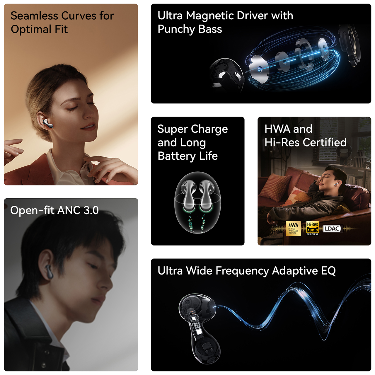 - Seamless Curves for Optimal Fit1 | HUAWEI FreeBuds 5 has been crafted to provide an ultimate level of comfort, thanks to their breathable open-fit design, fine-tuned by tens of thousands of ergonomic simulations.