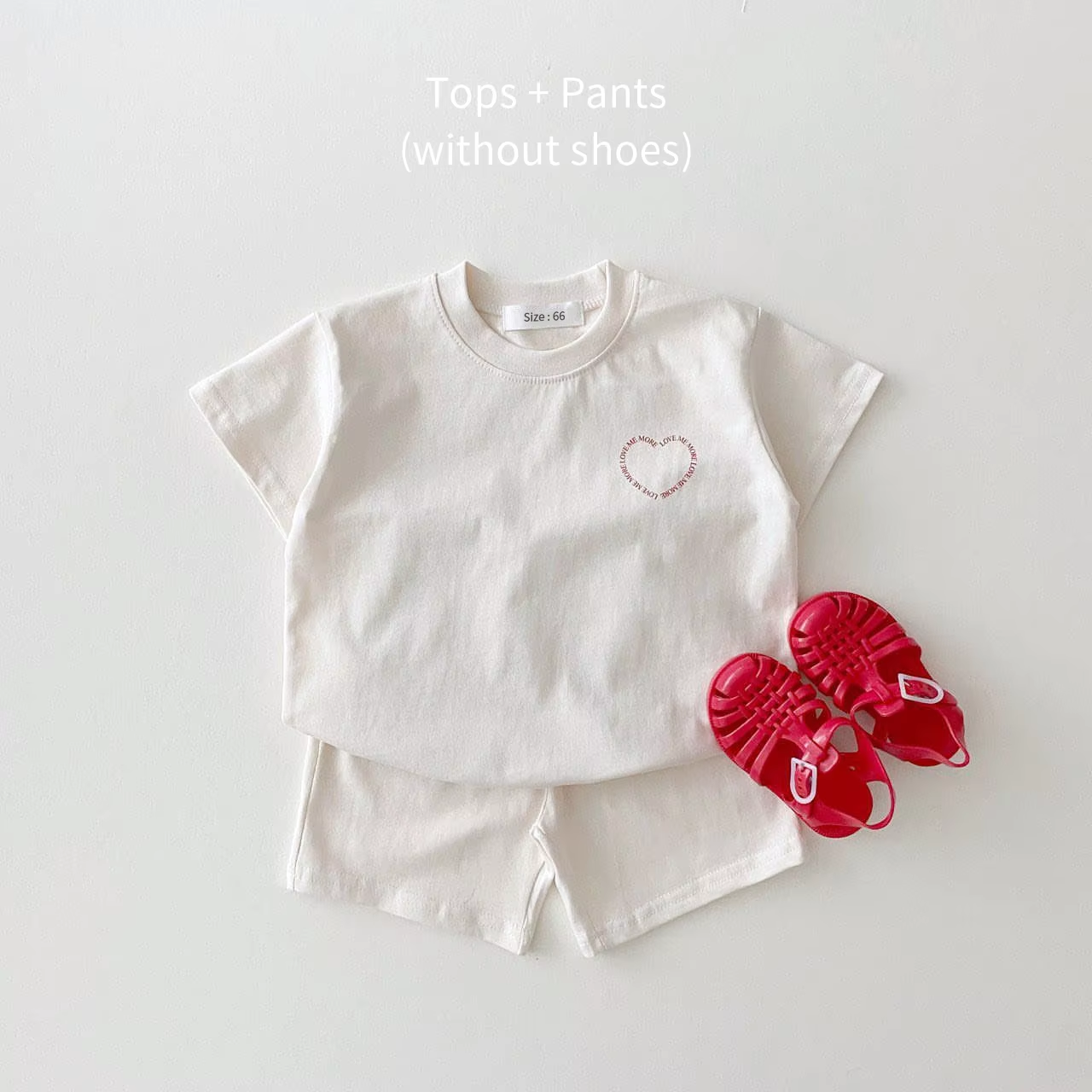 2024 Korean Clothes for Baby Girl Clothing Sets Boutique Outfits Summer Heart Print Basic T shirts Sweatshirt+Shorts Set 1-3yrs