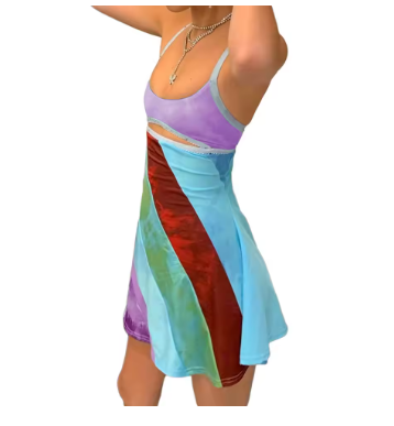 Womens fashion contrast color suspender short dress --- A fitted dress can set off your figure, it has a kind of stretching and heightening effect, this dress is your perfect choice, chic and comfortable; you can't miss these amazing wonderful clothes. This is a good gift for your lover or yourself!