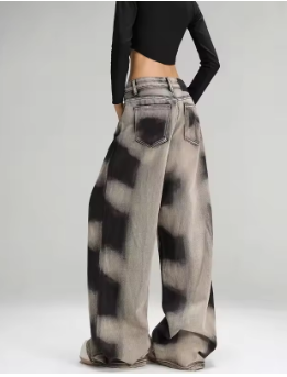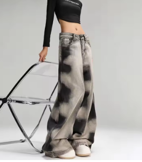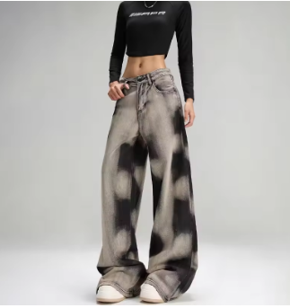 2025 Ropa Y2K Fashion Tie Dye Vintage Grey Baggy New Jeans Pants For Women Clothes Korean Casual Lady Trousers Pantalon Femme