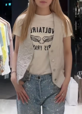 2025 Spring Summer Women Short Sleeve Tshirts Wing Letters Print Casual Simple Round Neck Lady All-Match Tee Tops