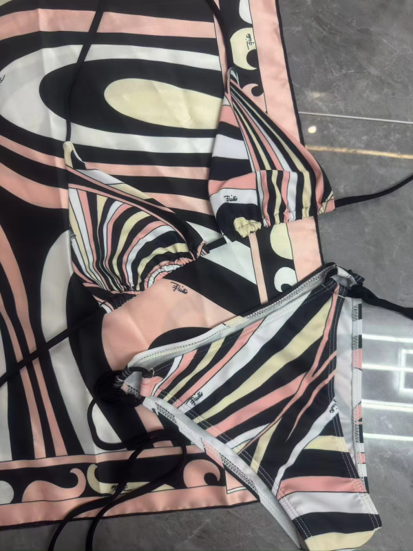 2025 Striped Bikini Scarf Three-Piece Beachwear Set Sarong Swimsuit Thong Bathing Suit - Swimwear Accessory