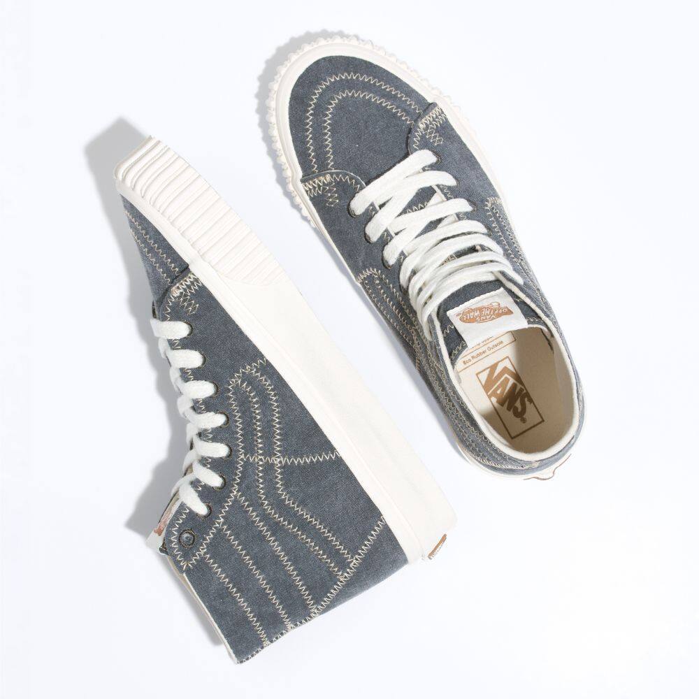 The Stone Wash Sk8-Hi Tapered, a deconstructed version of the classic lace-up high top, features a more slender and fitted silhouette than the traditional Sk8-Hi. It also includes sturdy textile uppers and signature rubber waffle outsoles.
