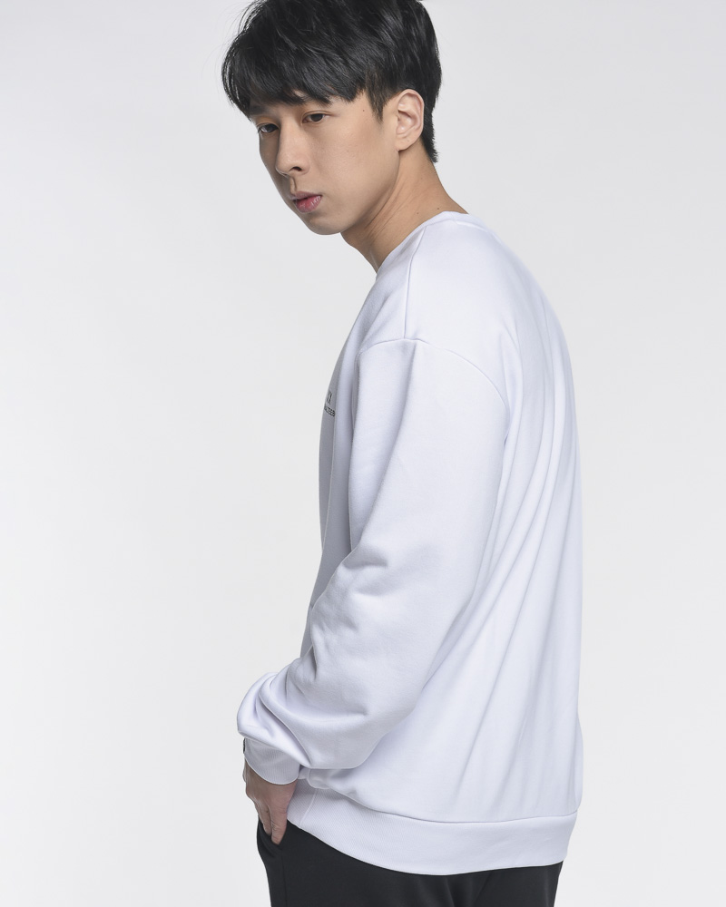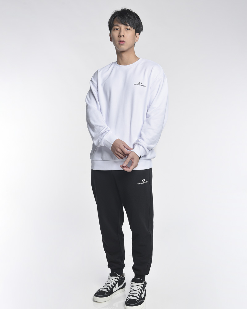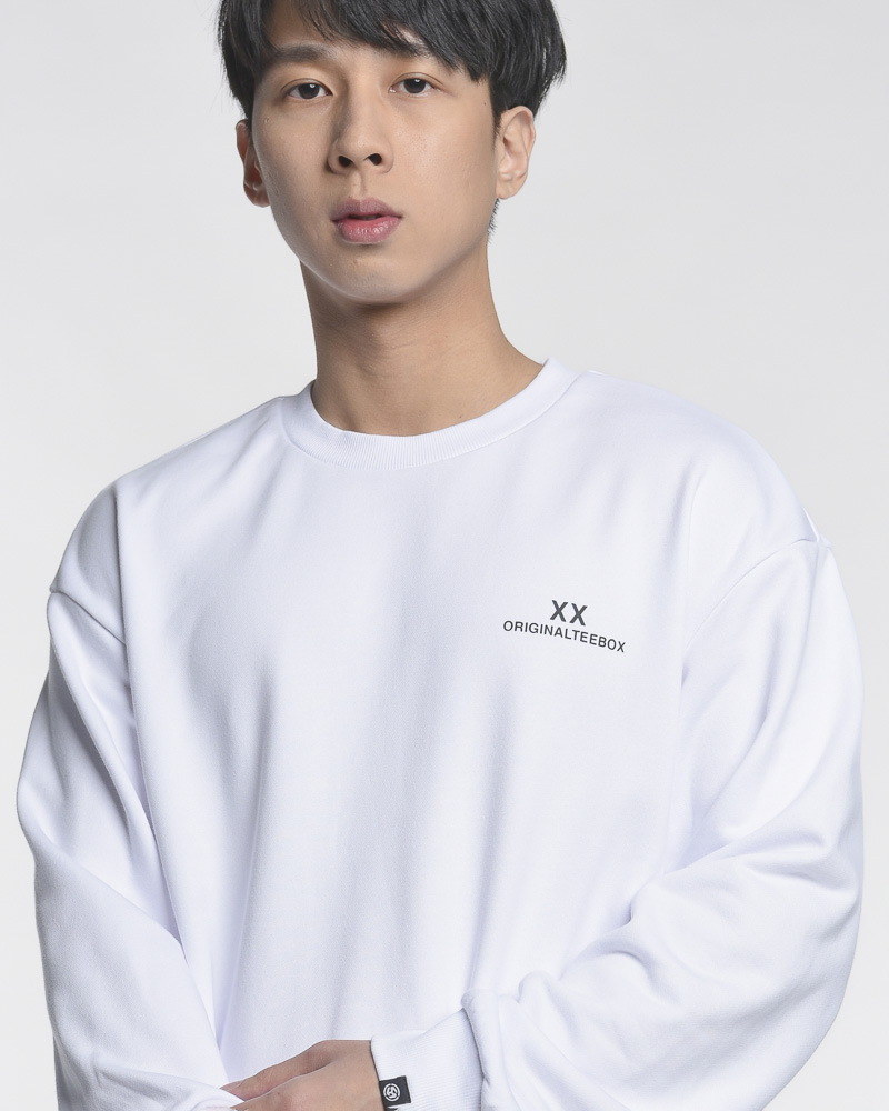 Oversized Solid Coloured Long Sleeve Sweatshirt with round neck. Comes with small "ORIGINALTEEBOX" logo at the front. Made of cotton and polyester.