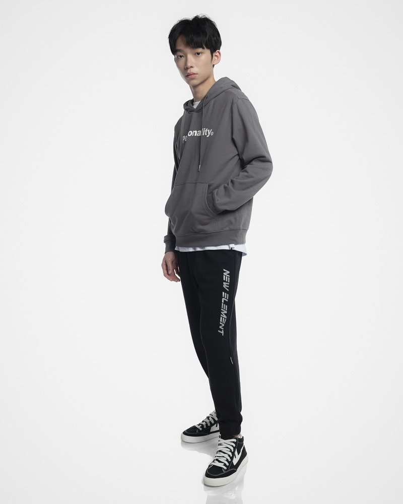 Regular Solid Coloured Long Sleeve Pullover Hoodie with Kangaroo Pockets at the front. Comes with Personality Slogan at the front. Made of cotton.