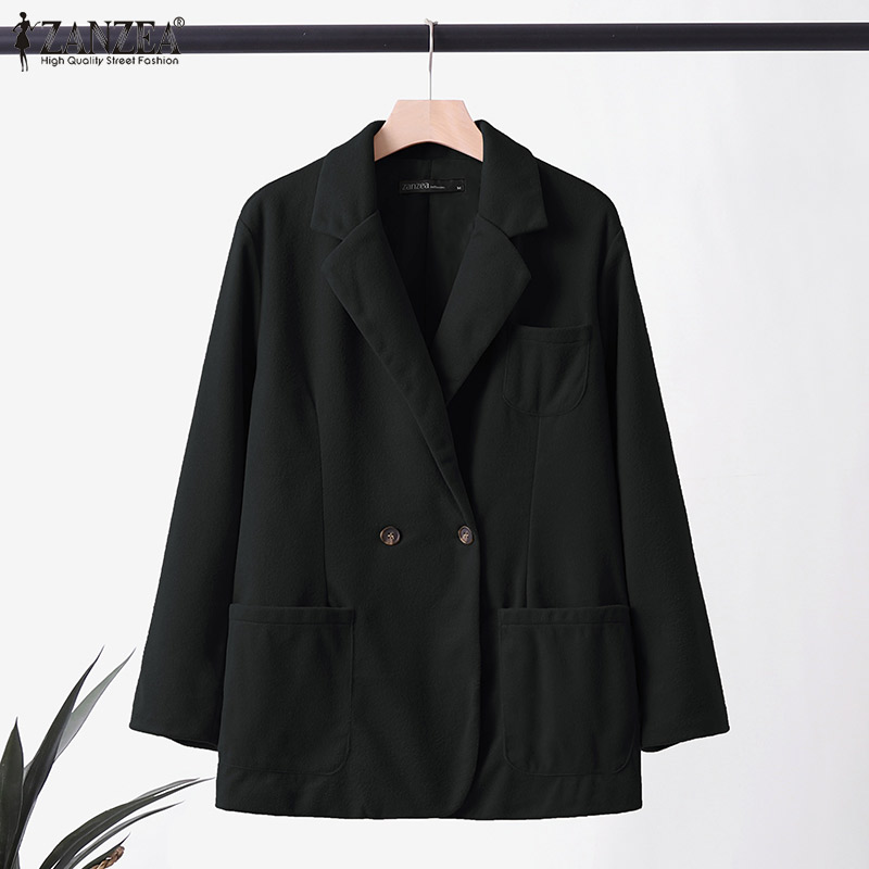 [Clearance Sale]ZANZEA Womens Business Long Sleeve Buttons Up Coat Formal Opent Front Jacket Plain Blazer #3 CLE