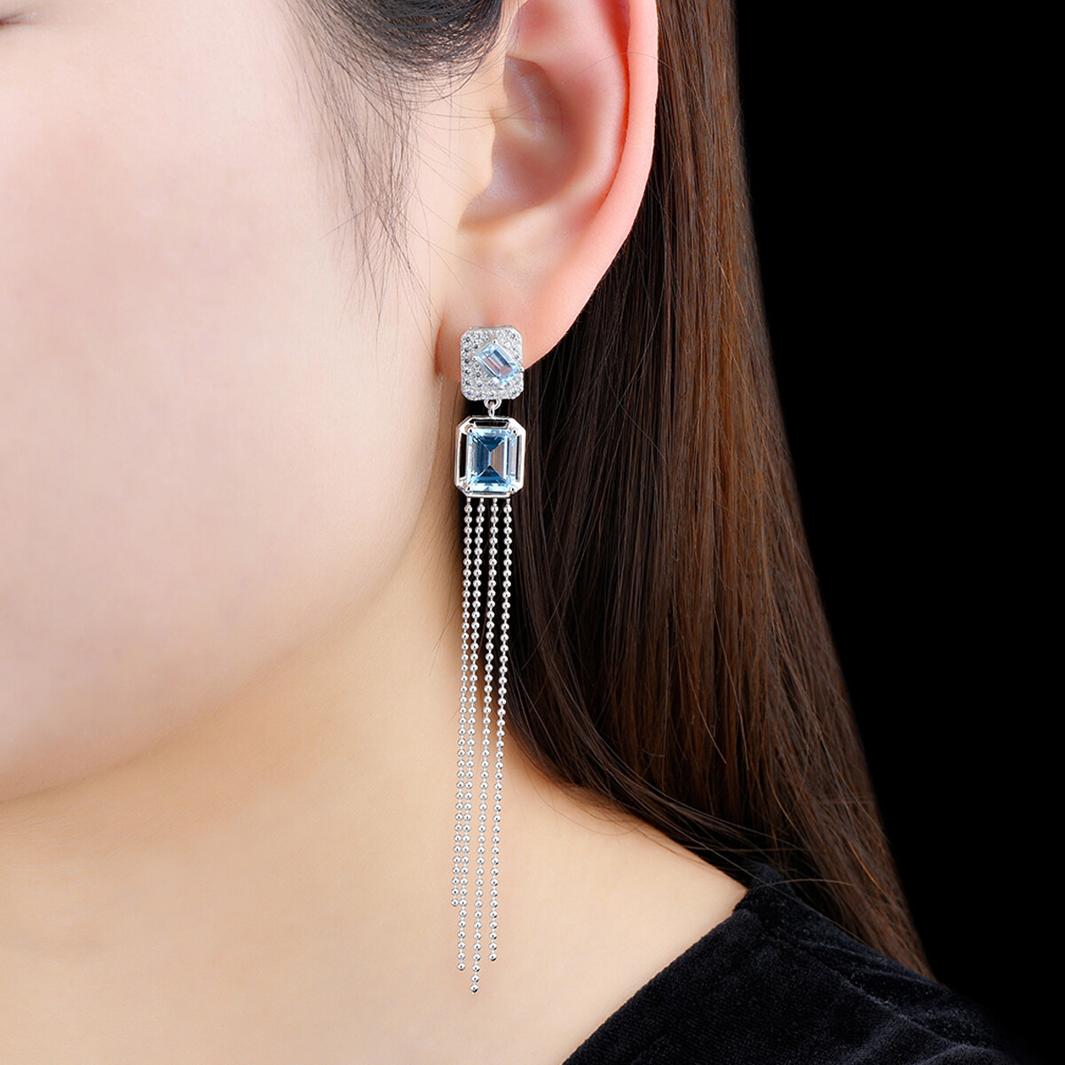 7.5 Carats Genuine Natural Sky Blue Topaz Light Blue Gemstone Sterling Silver 925 Drop Earrings Topaz Earrings For Women Jewelry