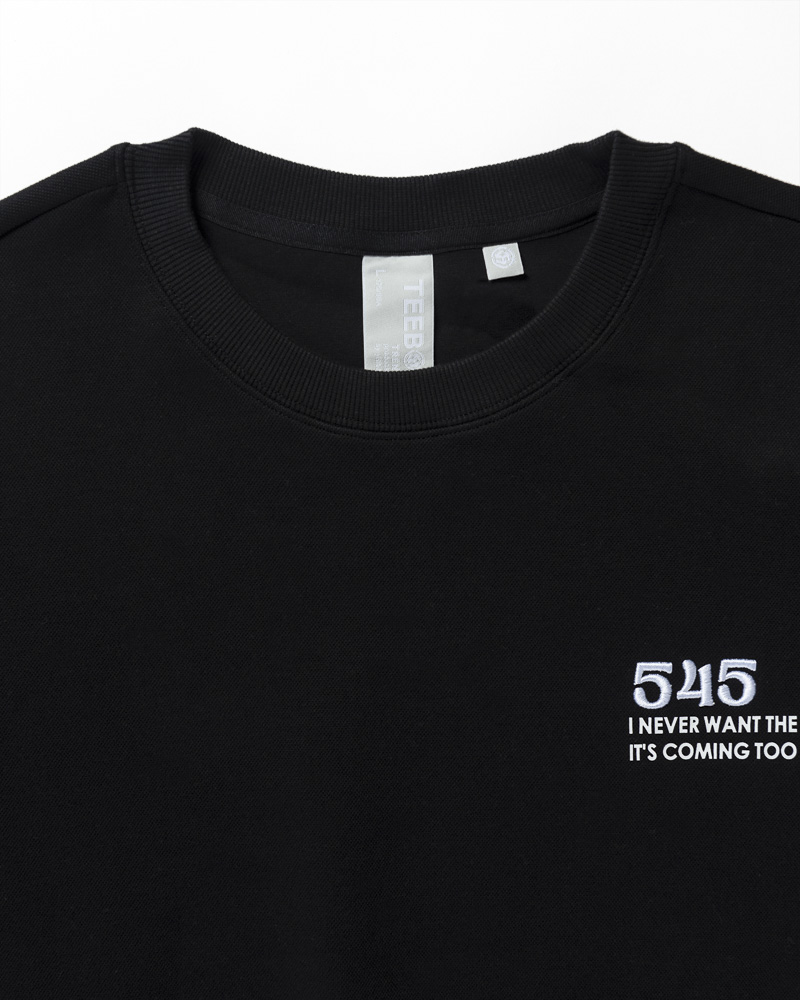 Yishion Men Long Sleeve Sweatshirt with '545' Logo Embroidery and Sleeve Prints (Black)