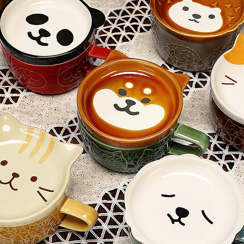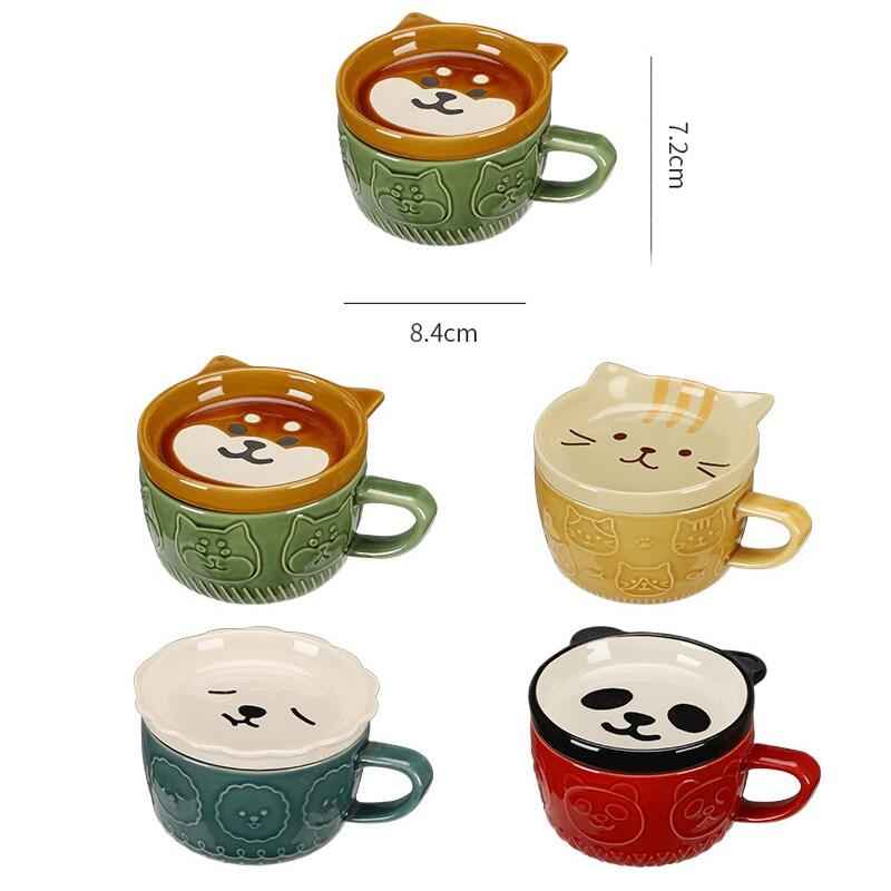 Cartoon Ceramic Cat Mug With Lid Breakfast Water Milk Tea Cup With Lid Coffee Mugs Personality Gift Tumbler Cup Cafe Home Use