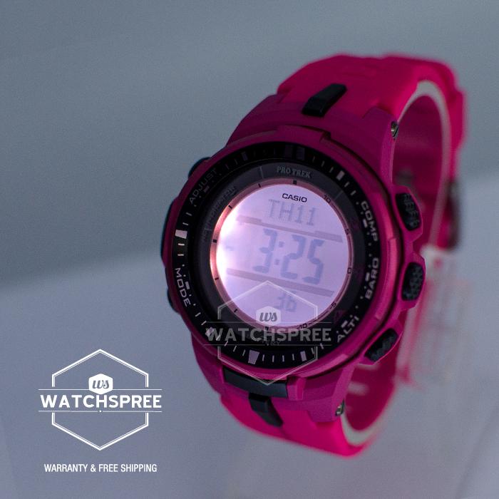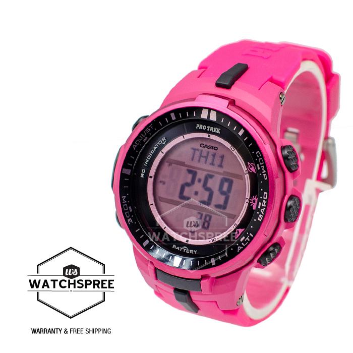 [Watchspree] Casio Pro Trek Men's Pink Resin Band Watch PRW3000-4B PRW-3000-4B