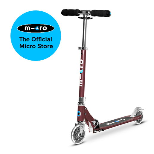The Micro Sprite can fold up and is easy to carry. This versatile aluminium scooter has been a popular companion for years amongst kids going to school and also commuters. This series now has LED wheels at the front and rear giving this classic Micro Scooter that extra something.