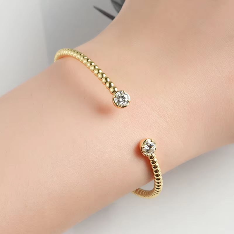 Anziw Solid 925 Sterling Silver Bracelet 5mm 0.5ct D Color Round Cut Moissanite with GRA Certificate Bangle Cuff for Women Fine Jewelry Gifts Wedding Anniversary