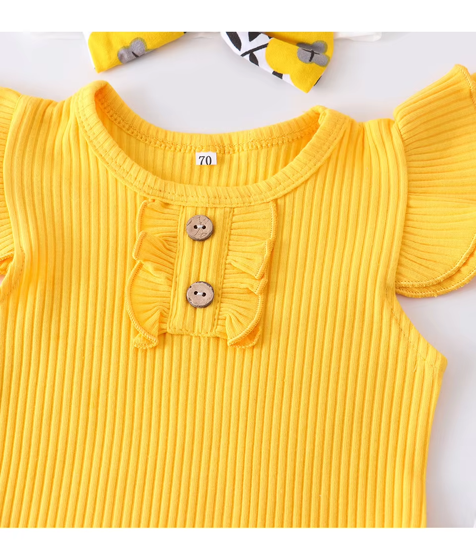 Baby Girl Summer Clothes Set Fashion Newborn Infant Knitting Cotton Ruffles Romper Shorts Bow Headband 3Pcs For Toddler Outfits