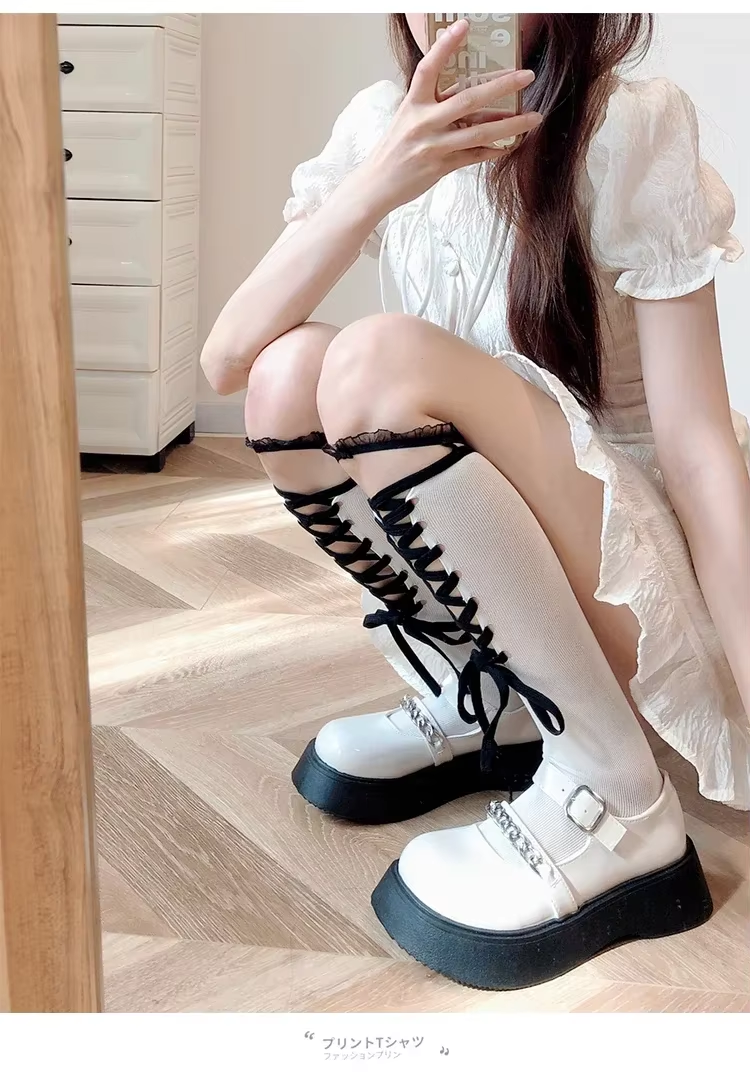 Bandage Bowknot Women Stockings Girls Long Socks Stockings Japanese Styles Kawaii Cute Knee Sock Stocking Ballet Style JK Lolita