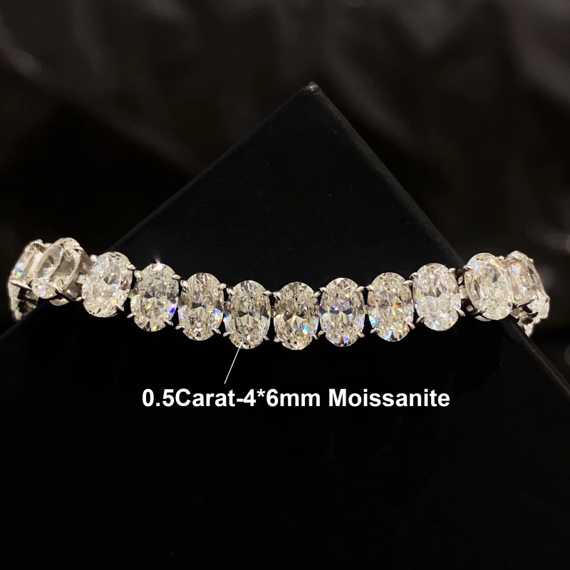 BXINY 0.5Carat Oval Cut Moissanite Tennis Bracelets S925 Silver 18K Gold Plated for Women Men HipHop Jewelry Gifts GRA Certified