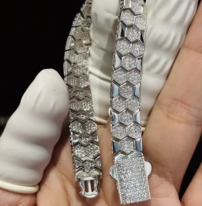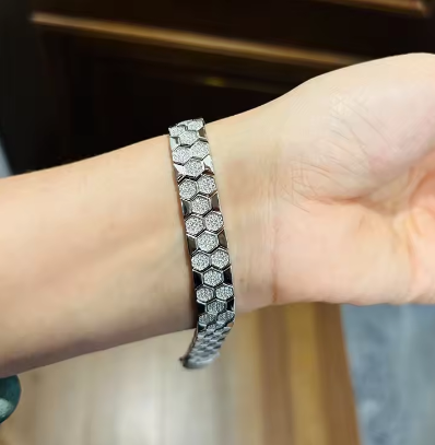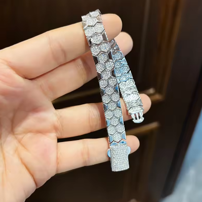 BXINY Full Moissanite Bracelets S925 Silver for Women Men Original Honeycomb Bangle Tested Pass Diamond Party Fine Jewelry Gifts