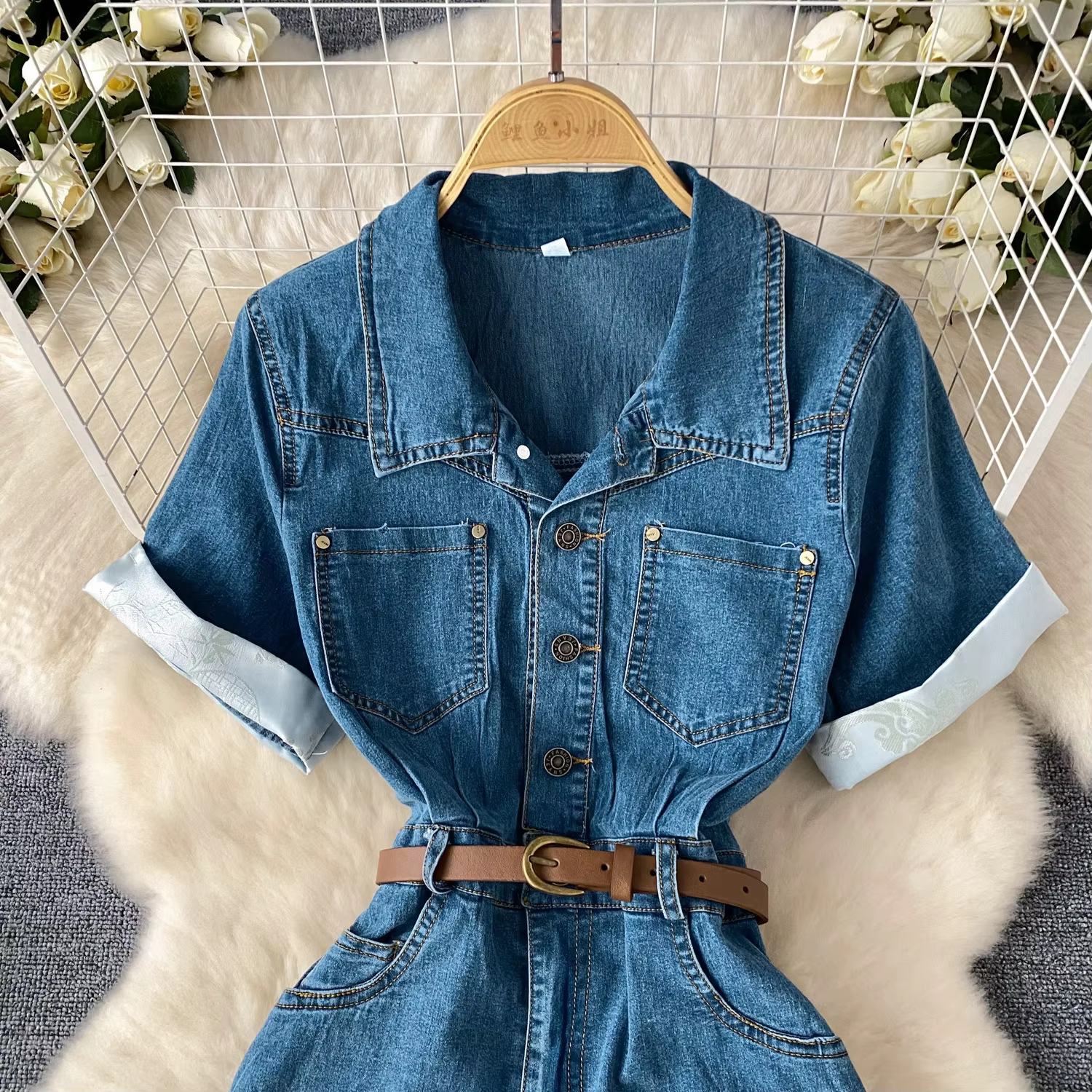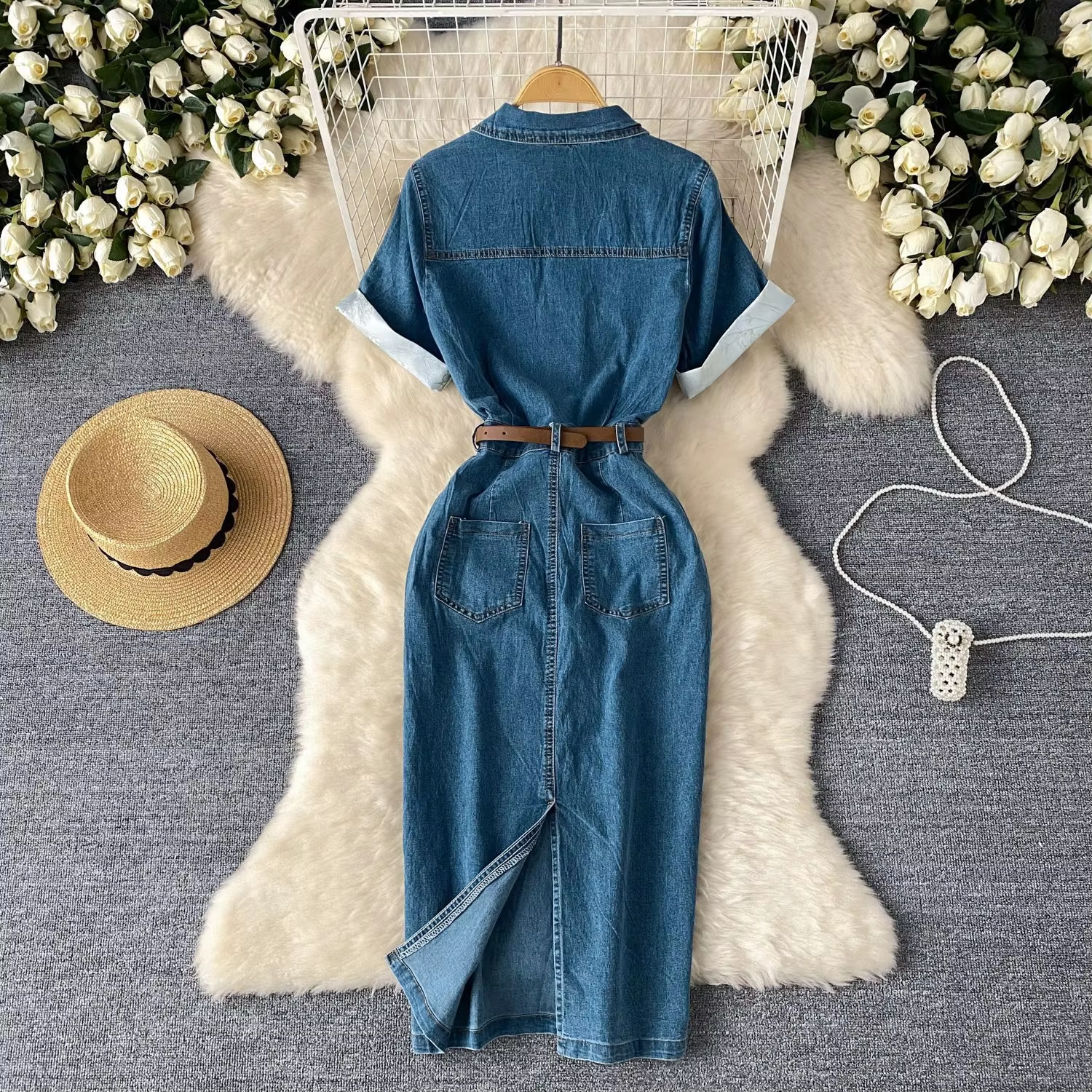 Denim Dress Women Dresses Mid Length Party Jeans Single Breasted Y2k Vestidos Short Sleeve Elegant High Waist Streetwear 2025