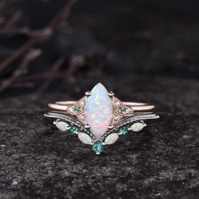 European and American Fashion Inlaid Horse Eye Australian Treasure Fire Color Three Piece Women's Ring Set