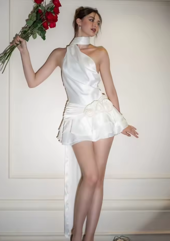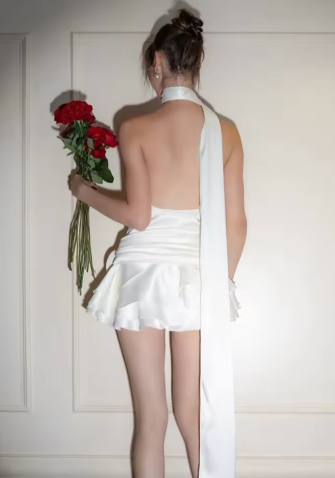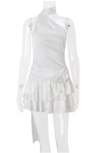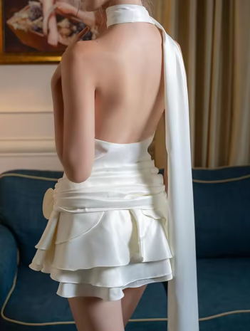 Fantoye Satin Sexy Backless 3D Flowers Women Dress White Halter A-line Dress Female Spring Slim Elegant Party Clubwear Vestidos