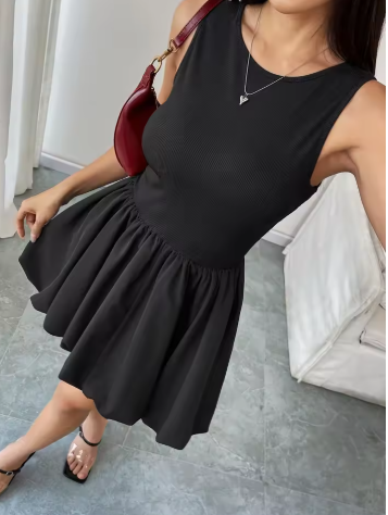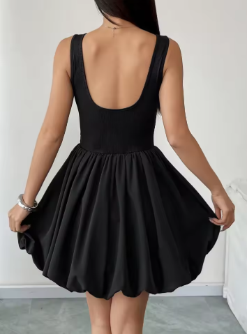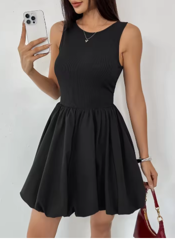 Fashion Backless Puff Hem High Waist Mini Dresses Women Elegant Black Sleeveless Short Dress 2025 New Vocation Streetwear