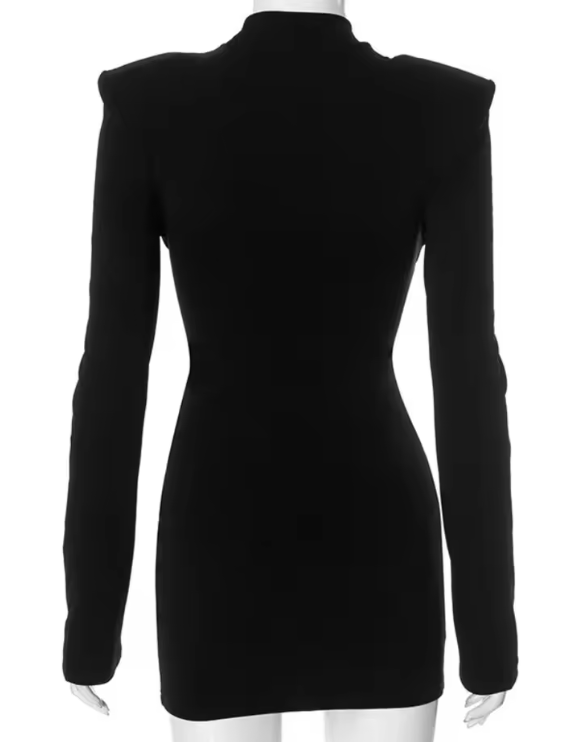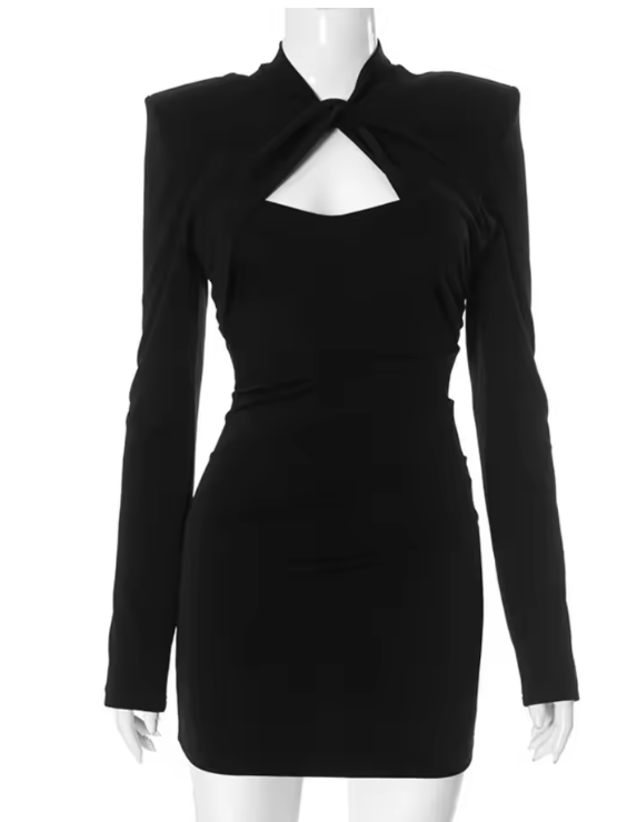 Fashion Tie Knot Shoulder Pads Short Dress Women's Hollow Out Long Sleeve High Waist Tunics Solid Black Party Dresses Streetwear