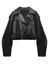 Fitaylor Women Faux PU Leather Jacket Casual Lady Lapel Zipper Short Leather Jacket High Street Motorcycle Coat