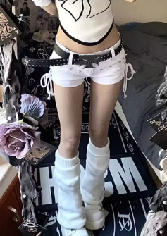 Gothic Y2k Lace Up Low Rise Denim Shorts Women 2000s Fashion Grunge Sexy Hot Pants Streetwear Harajuku American Retro Shorts
