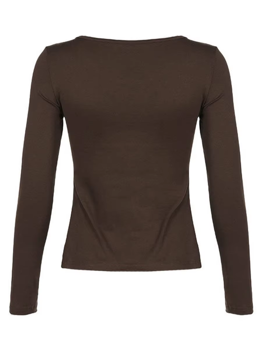 Women Lace Tops, Long Sleeve Scoop Neck Solid Color Casual Party Street Fall Spring Brown Tops