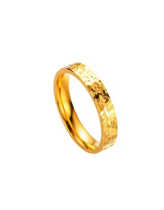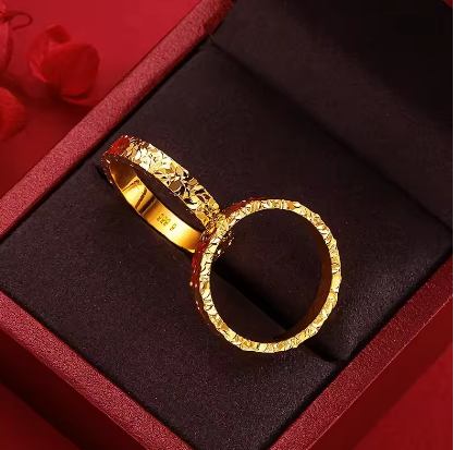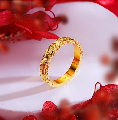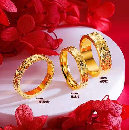 High-quality 9999 ring real gold three-sided broken ice pattern 24 gold 4mm narrow face burst sparkling plain ring