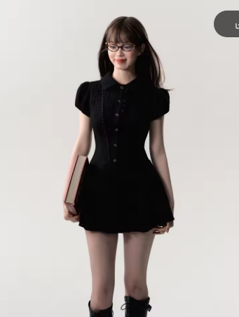 High Quality Dress Elegant Sexy Lace Decoration Retro Dress Vestido Y2k A-line Short Sleeved Shirt Skirt Commuting College Style