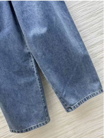 Jeans Women Spring Summer Cotton High-waist Folds Wide Leg Straight Denim Pants Trendy Casual Basics Loose Fit Female Clothes