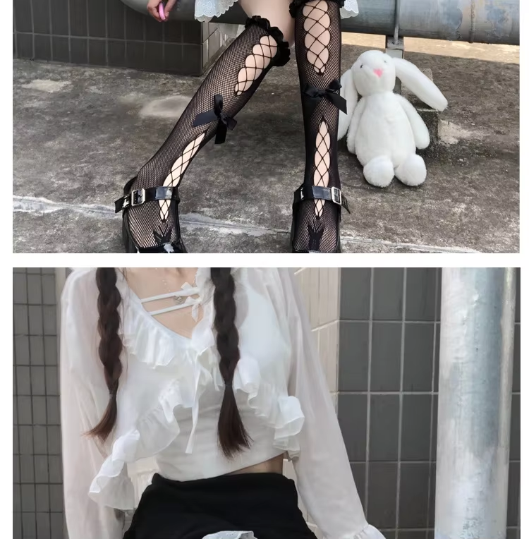 JK Girls Lace Socsks Hollowed-out Black Mesh Bow Mid-leg Socks Children's Jk Versatile Thin Hollowed-out Fishnet Lolita Socks