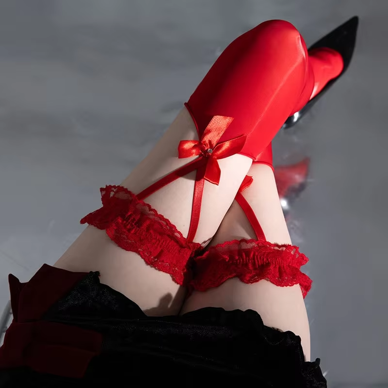 JK Lolita Women Thigh High Sexy Stockings Japanese Style Lace Bow Horse Oil Stockings With Suspenders Party Over Knee Medias