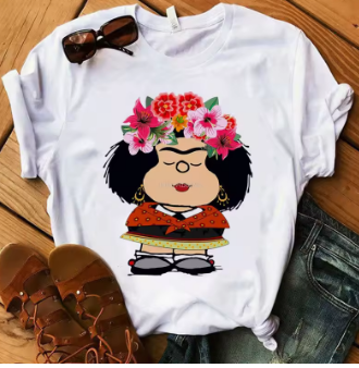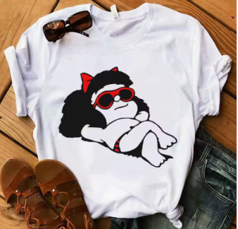 Kawaii Anime Mafalda Graphics Women T-Shirts Summer Loose Tees 90S Short Sleeve Ladies Blouse Ladies White Top Girl Clothes Gift