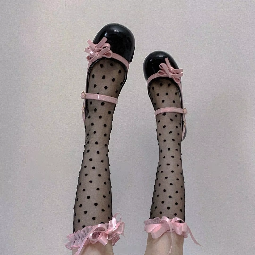 Lolita Cute Sweet Bow Polka Dots Calf Socks Jk Lace Socks Summer Thin Sheer JK Socks Lolita Knee Socks Pink High Knew Socks