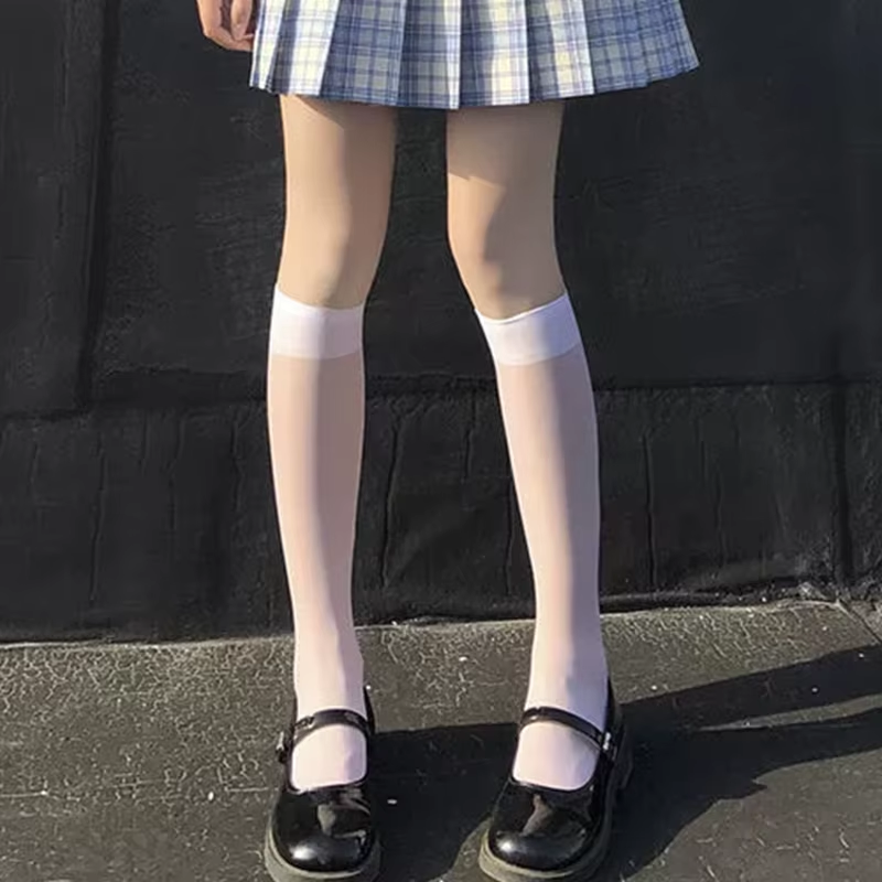 SpecificationMaterial: Core-spun silkCategory: socksColor: black, whiteStyle: JK, fashionable and simple, cuteSize: about 45cmApplicable: daily, shopping, party, datingPackage includes: 1*pair of socks