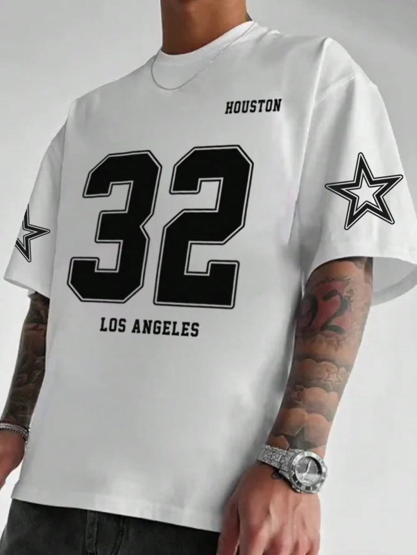 Los Angels Under The Classic Letter 32 Print T Shirt Man O-Neck Loose Short Sleeved Breathable Soft Tops Street Harajuku Tshirt
