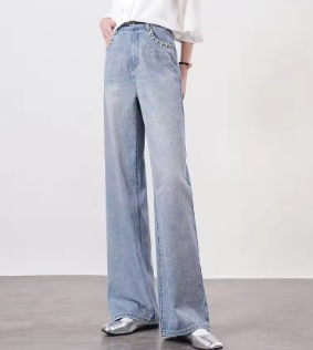 LOUIS YAO 2025 Spring and Autumn Edition Personalized Chain Decorative Jeans Retro Fashion Long Straight Pants Women's Pants