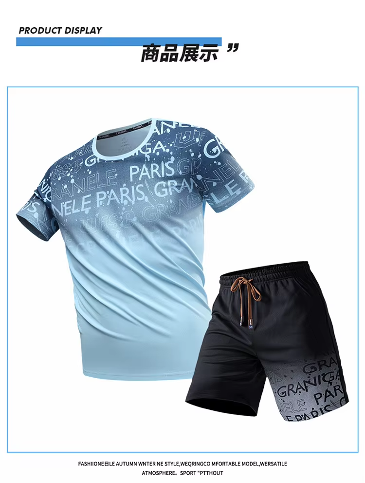 Men's Summer Ice Silk Quick-Dry Casual Sports SetTT Men's Sportswear Set Fashion Suits Shorts Man Clothing Sale Man T Shirt Golf