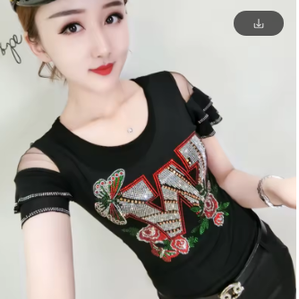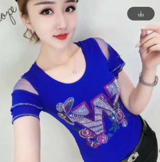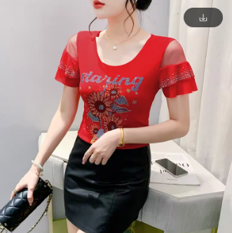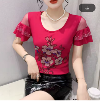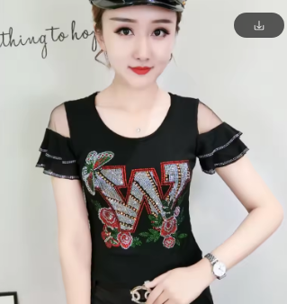 New Arrivals Summer European Style T-Shirt Chic Hot Diamonds Patchwork Mesh Ruffles Women Tops Sexy Backless TShirt Tees 2022