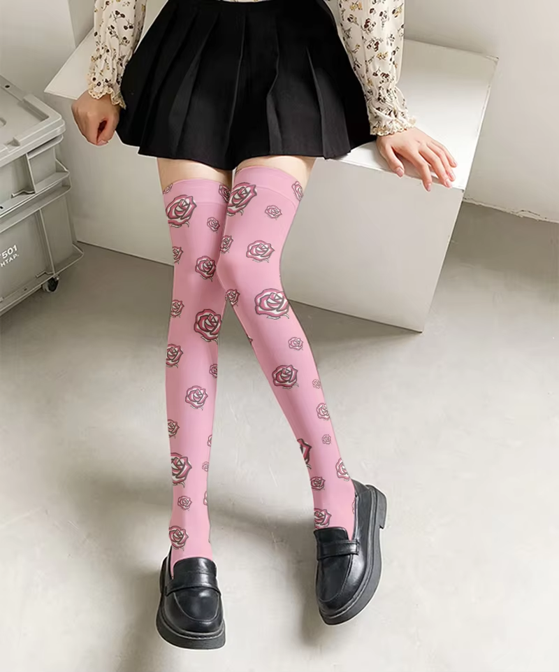 New hot fashion ladies stockings 3D printed striped cartoon pink stockings Harajuku Kawaii sweet Lolita JK thigh stockings