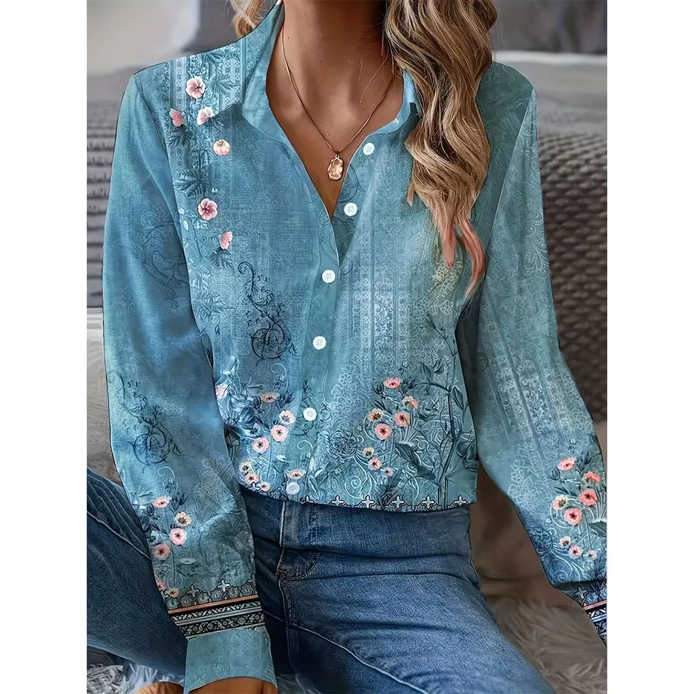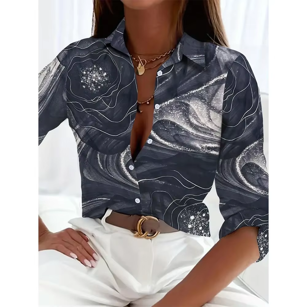 New Spring And Summer Women's Long-Sleeved Shirt Fashionable 3d Square Printed Single-Breasted Long Sleeve Button Basic Shirts