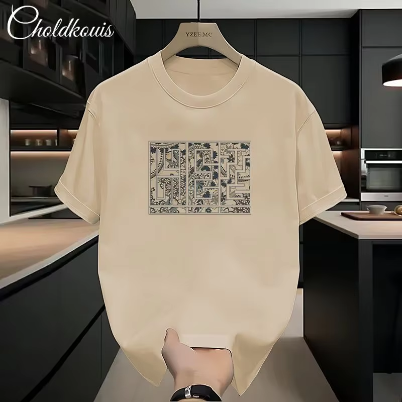 New Summer Luxury Man Casual Cotton 100% Tops for Men O-Neck Loose Printed White T-Shirts 200g Short Sleeved T-shirt for Men