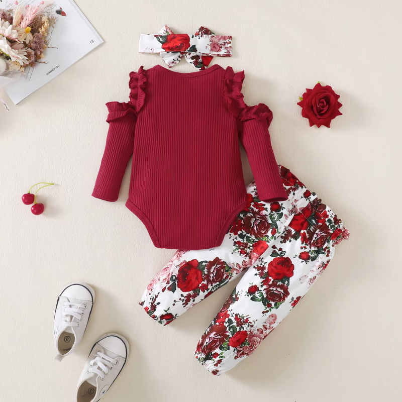 Newborn Baby Girl Clothes Set 3 6 Months Long Sleeve Single Breasted Tops Floral Print Pants Headband One Year Baby Outfits