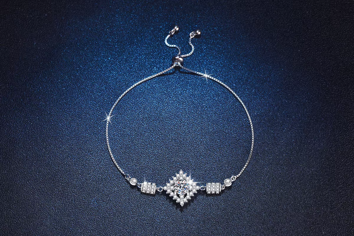 PT950 Platinum Bracelet Women's Moissanite Handkerchief Square Bag High-end 1 Carat Moissanite Bracelet Adjustable Bracelet