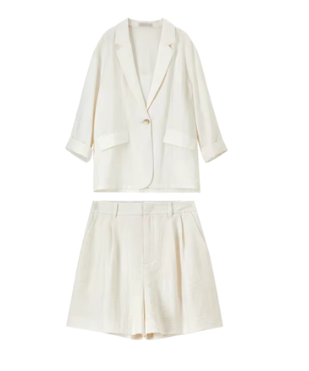 SENTUBILA Linen Blend Women's Two Pieces Set Notched Neck Single Button Blazers Straight Shorts New in Matching Sets 152Z59294