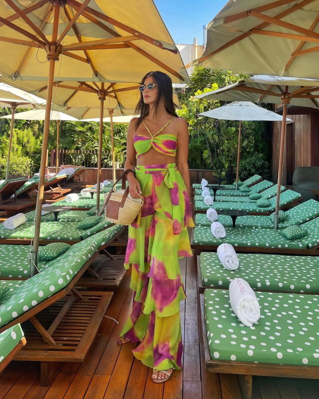 Sexy Print 3 Pics Women Bikini Set With Pants Pleated Bra High Waist Hollow Out Wide Leg Pants Suit Summer Beach Swimsuit